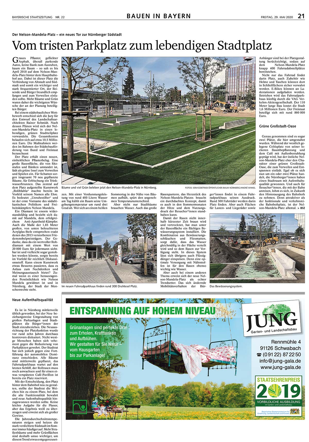 Die voraussichtliche Eröffnung des neuen Nelson-Mandela-Platzes wird wohl nach den Sommerferien 2020 stattfinden – dann sind sämtliche Arbeiten fertiggestellt und der Rasen ist strapazierfähig genug für die zu erwartenden Besucherströme!