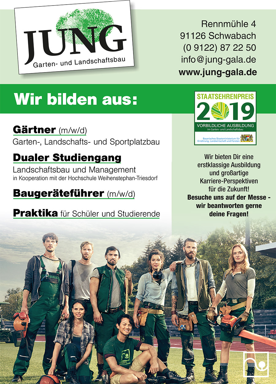 JUNG Garten-und Landschaftsbau steht Euch Rede und Antwort auf folgenden Ausbildungsmessen